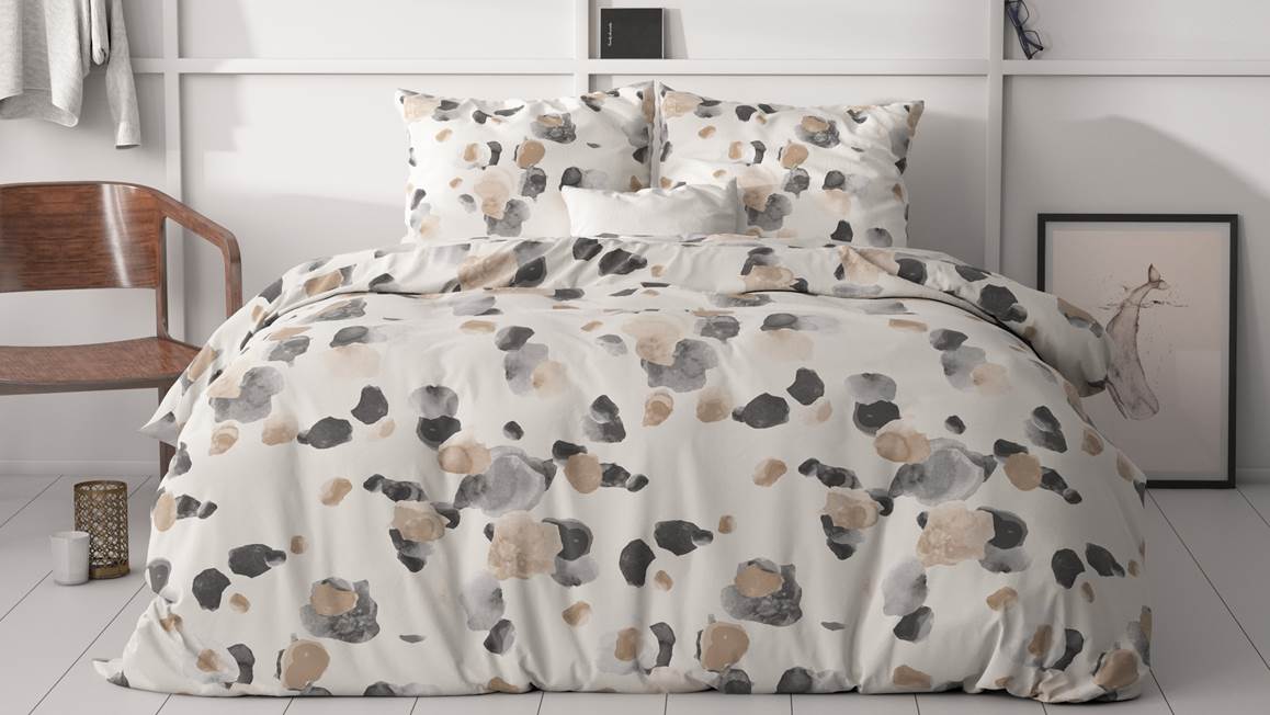 Kom iedere avond heerlijk tot rust onder het Sleeptime Spotty dekbedovertrek. Het witte dessin is voorzien van een grafische print in ontspannende aardetinten. Zo geef je jouw slaapkamer direct een trendy uitstraling.