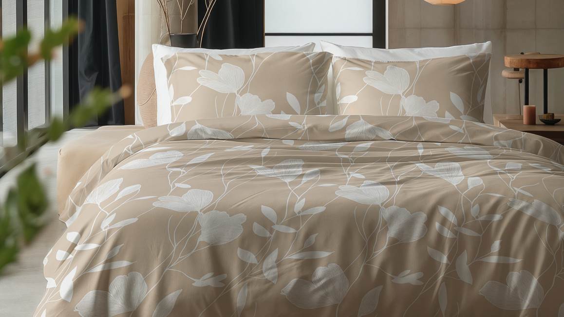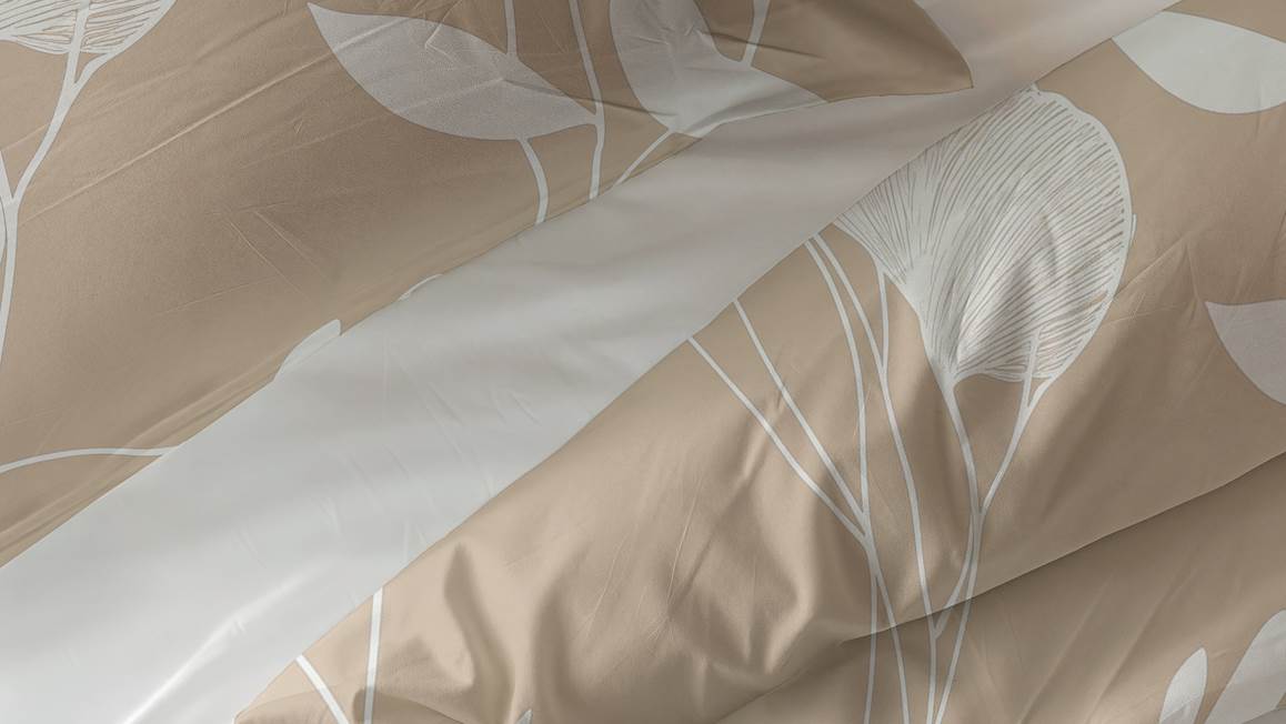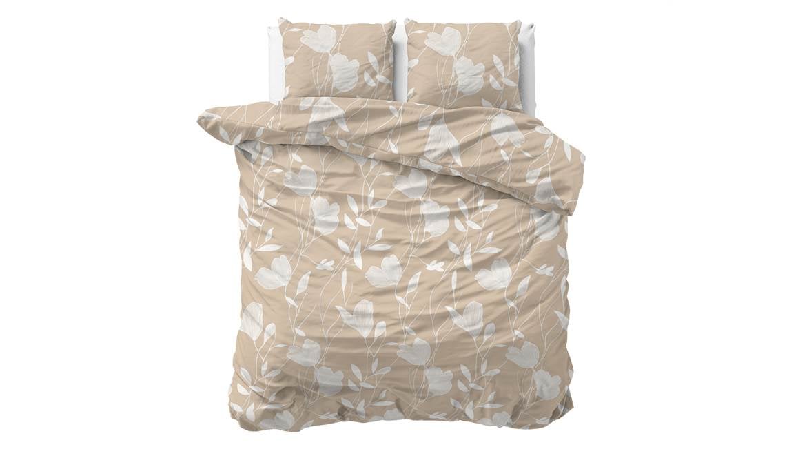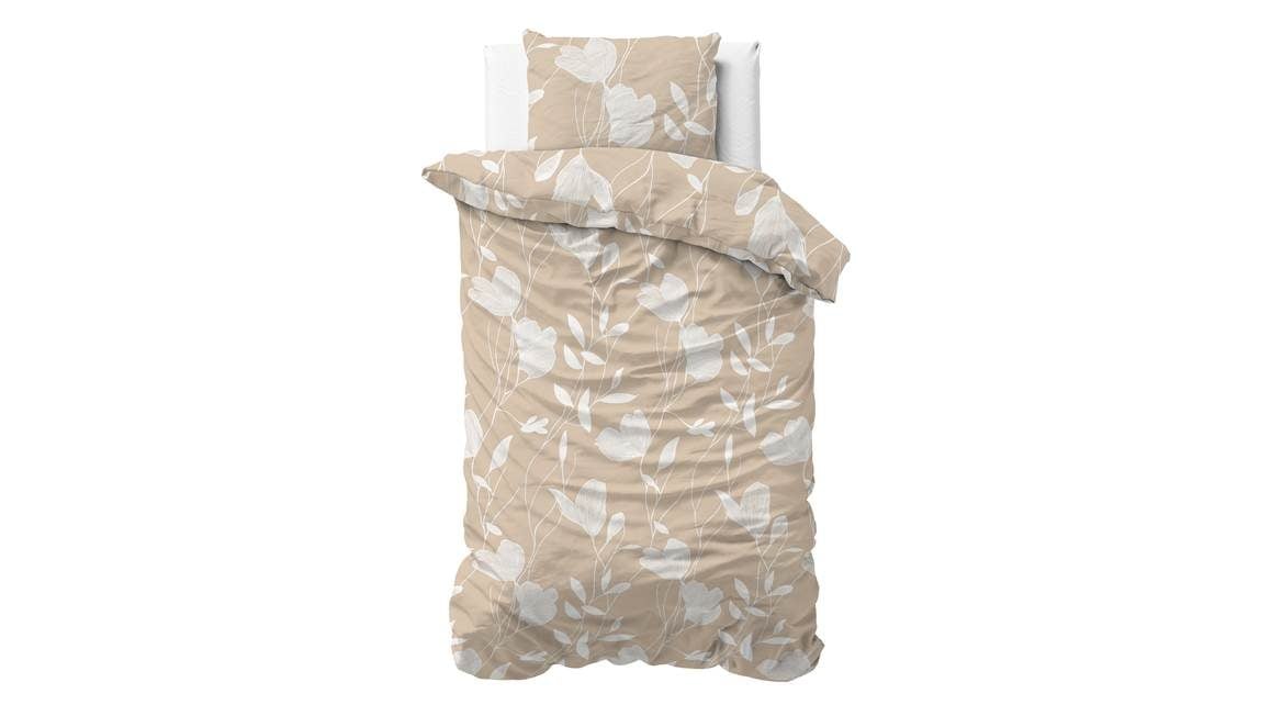 Het Sleeptime Spring dekbedovertrek heeft een zachte zandkleur met een grote bladerprint. Het ontwerp geeft jouw interieur een serene uitstraling, zodat je na een drukke dag heerlijk ontspannen in slaap valt. Je combineert het overtrek gemakkelijk in verschillende slaapkamerstijlen.