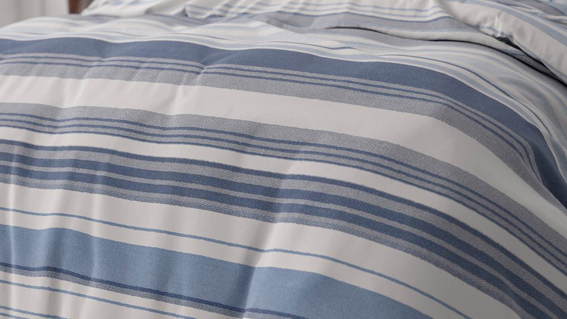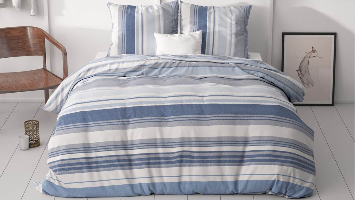 Ben jij een liefhebber van streepjes? Dan kan het Stripy dekbedovertrek niet ontbreken in jouw slaapkamer! Het overtrek oogt rustig door het frisse kleurpalet bestaande uit verschillende tinten wit, blauw en grijs.