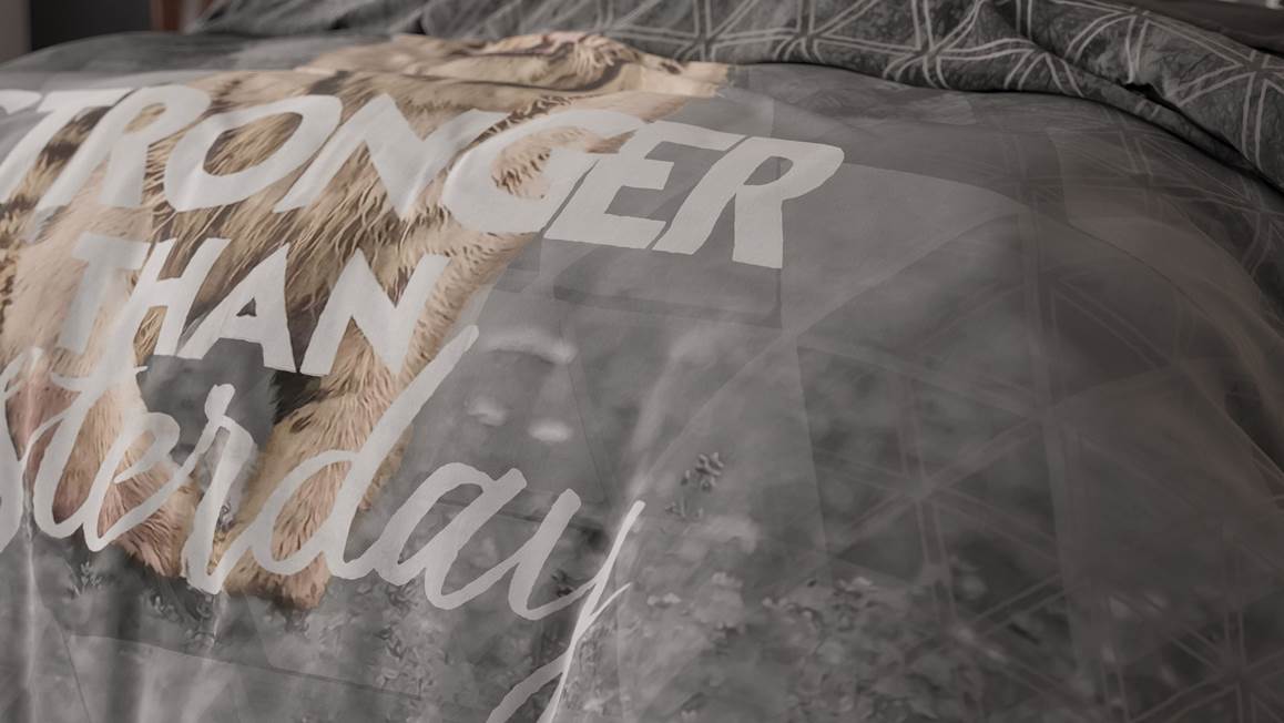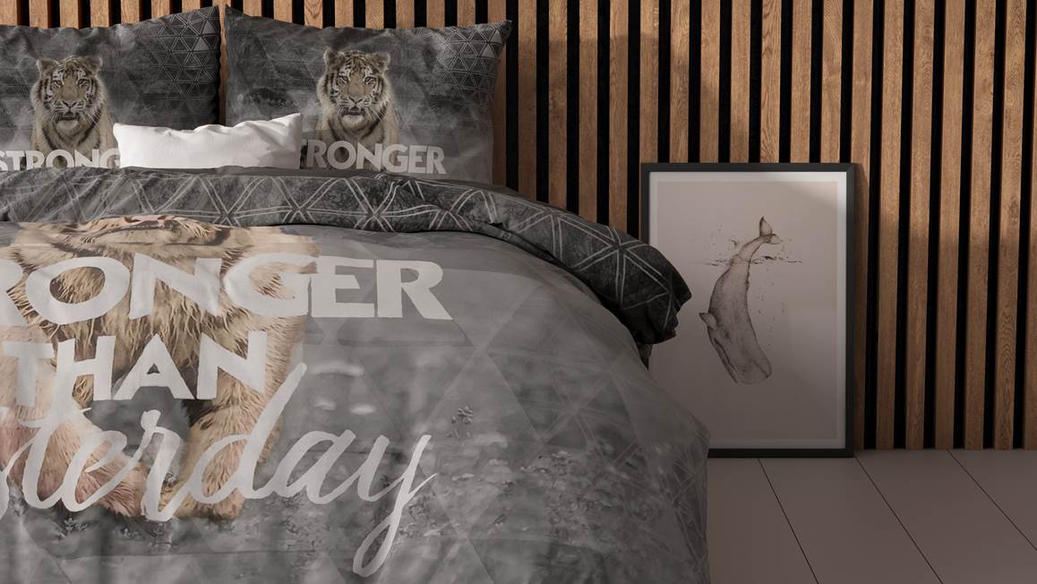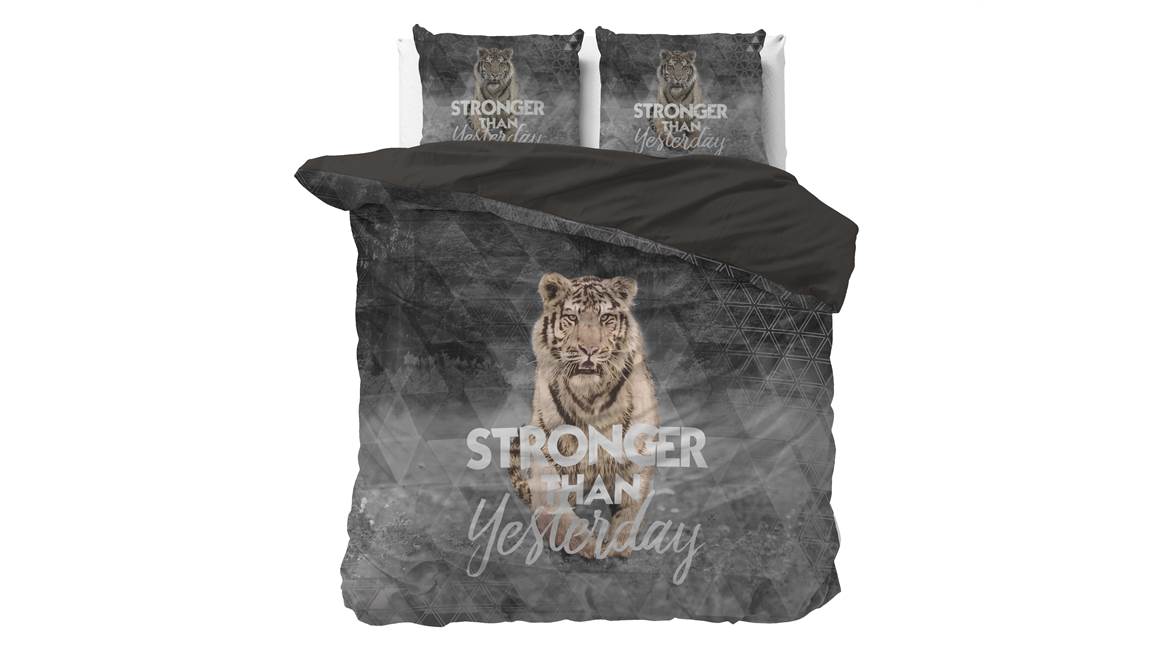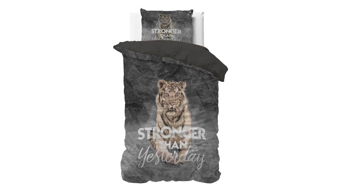 Dankzij dit prachtige Sleeptime Stronger dekbedovertrek geef jij jezelf elke ochtend weer een motivatie boost! Op het grijze dessin zie je een stoere tijger en een motiverende tekst. Voor de afwisseling heeft de achterzijde een effen print.