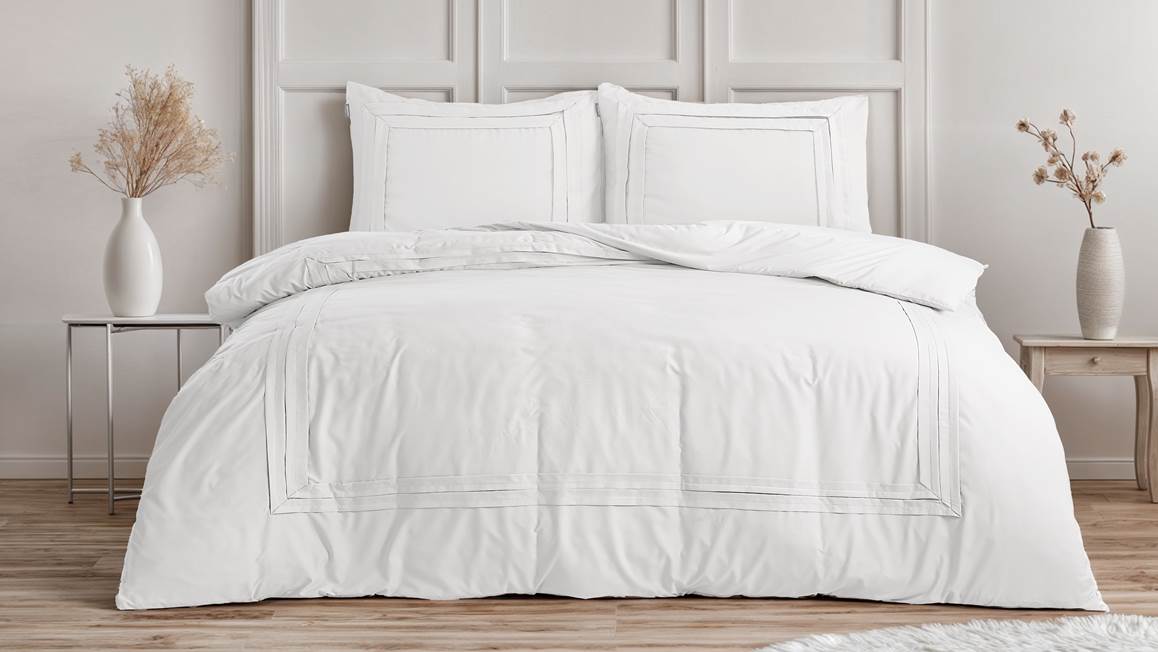 Het Slaaptime Tailord dekbedovertrek geeft jouw slaapkamer een strakke uitstraling. Het witte dessin een subtiele omlijning van witte opgestikte stof. De achterzijde is effen, zodat jij heerlijk in slaap kunt vallen.