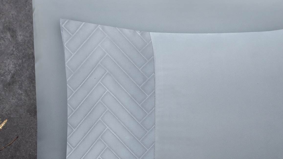 Droom iedere avond heerlijk weg onder het Sleeptime Valencia dekbedovertrek. Het grijsachtige overtrek is voorzien van een visgraatpatroon op zowel de kussenslopen als het overtrek. Deze band zorgt voor een speelse toevoeging die het effen ontwerp net even anders dan anders maakt.