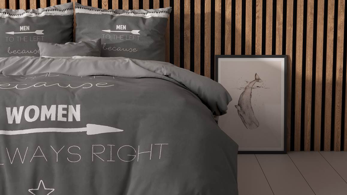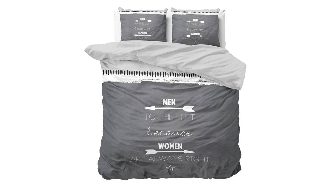 Ben jij nog op zoek naar het perfecte dekbedovertrek? Dan is het leuke Sleeptime Women Always Right dekbedovertrek een goede keuze voor jou. Deze print bestaat uit verschillende grijstinten en heeft een grappige tekst.